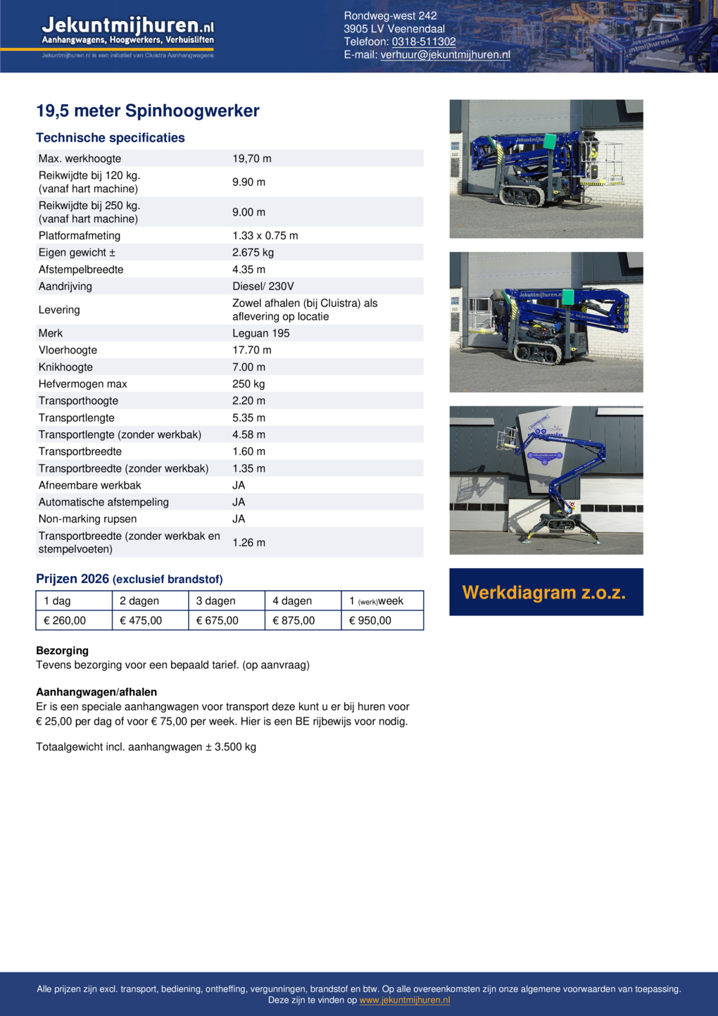 Aanhangwagens, hoogwerkers en verhuisliften: bij Jekuntmijhuren.nl kun je voor elke klus het juiste materiaal huren. Als specialist op dit gebied leveren wij betrouwbaar materiaal tegen een nette prijs. We doen wat we beloven. Dat is de kracht van goede service.