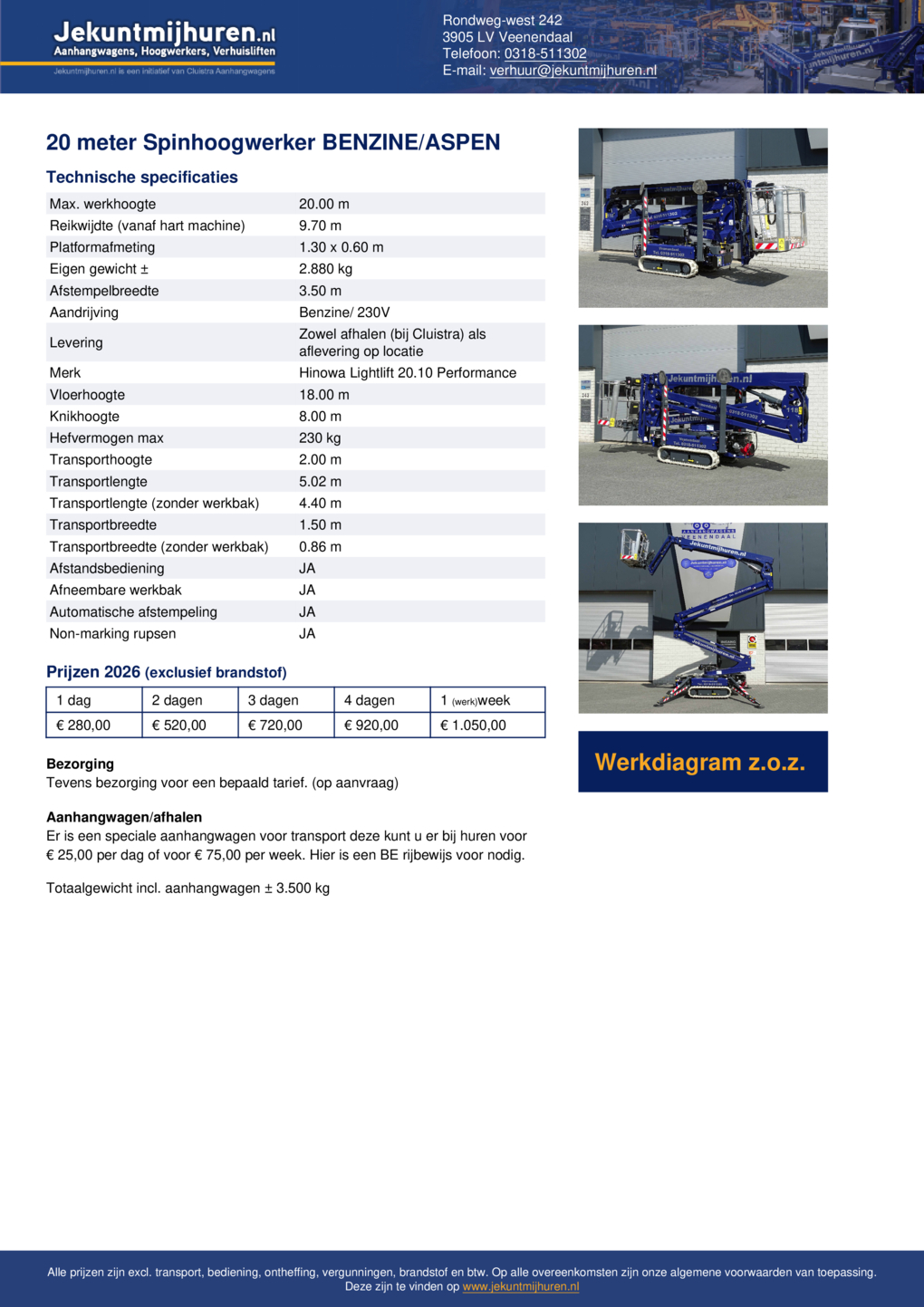 Spinhoogwerker 20 meter BENZINE/ASPEN