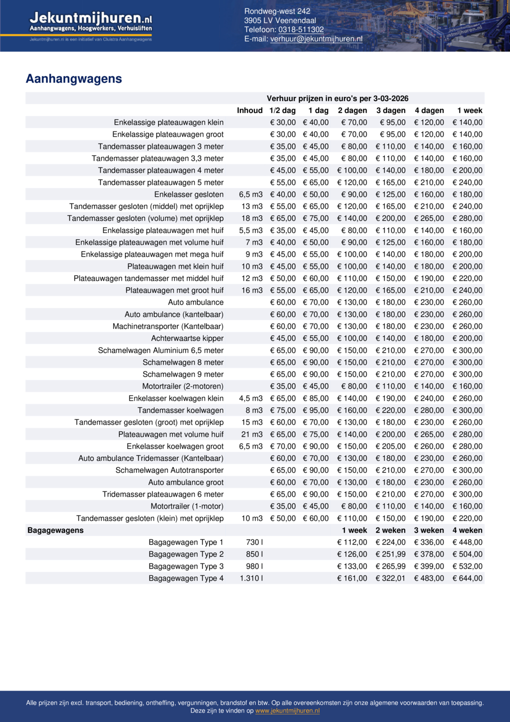 Verhuurprijzen