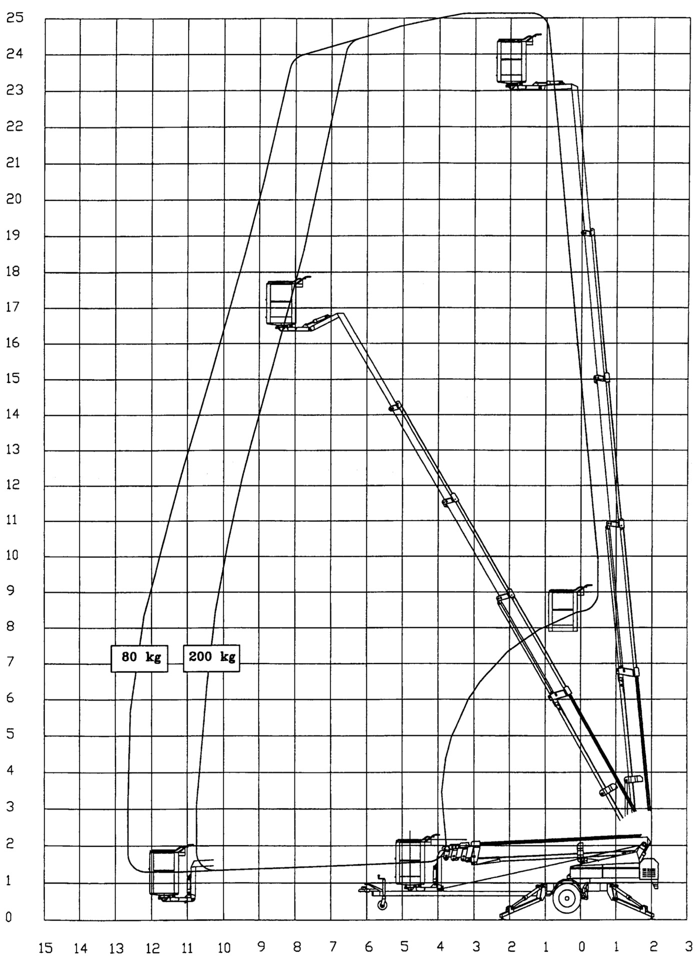 | Reikwijdte bij 200 kg (vanaf hart machine) | 10.70 m |