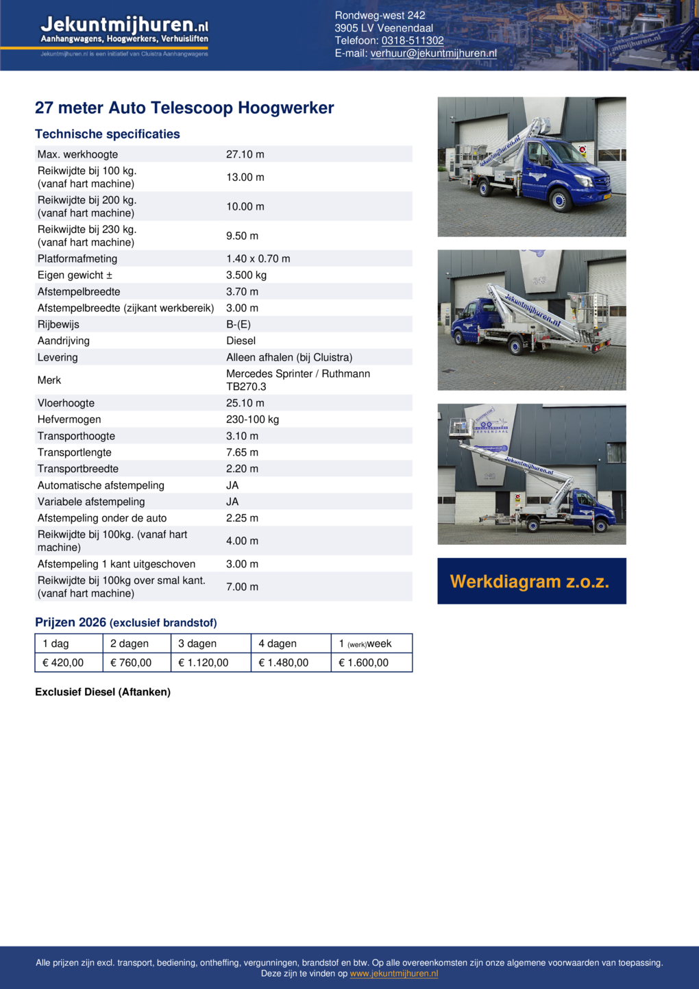 De belangrijkste eigenschappen van de 27 meter autohoogwerker zijn: