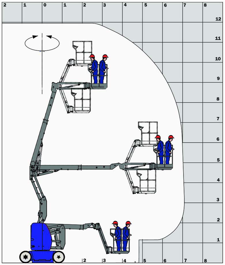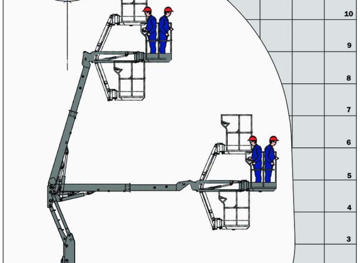 Deze flexibele machine is tevens uitgerust met een draaibare jib zodat de machine nog wendbaarder is. Zo kan de werkbak op hoogte in vrijwel iedere positie worden gebracht. Omdat de mast niet steeds naar beneden hoeft, bespaart dit ook nog eens enorm veel tijd.