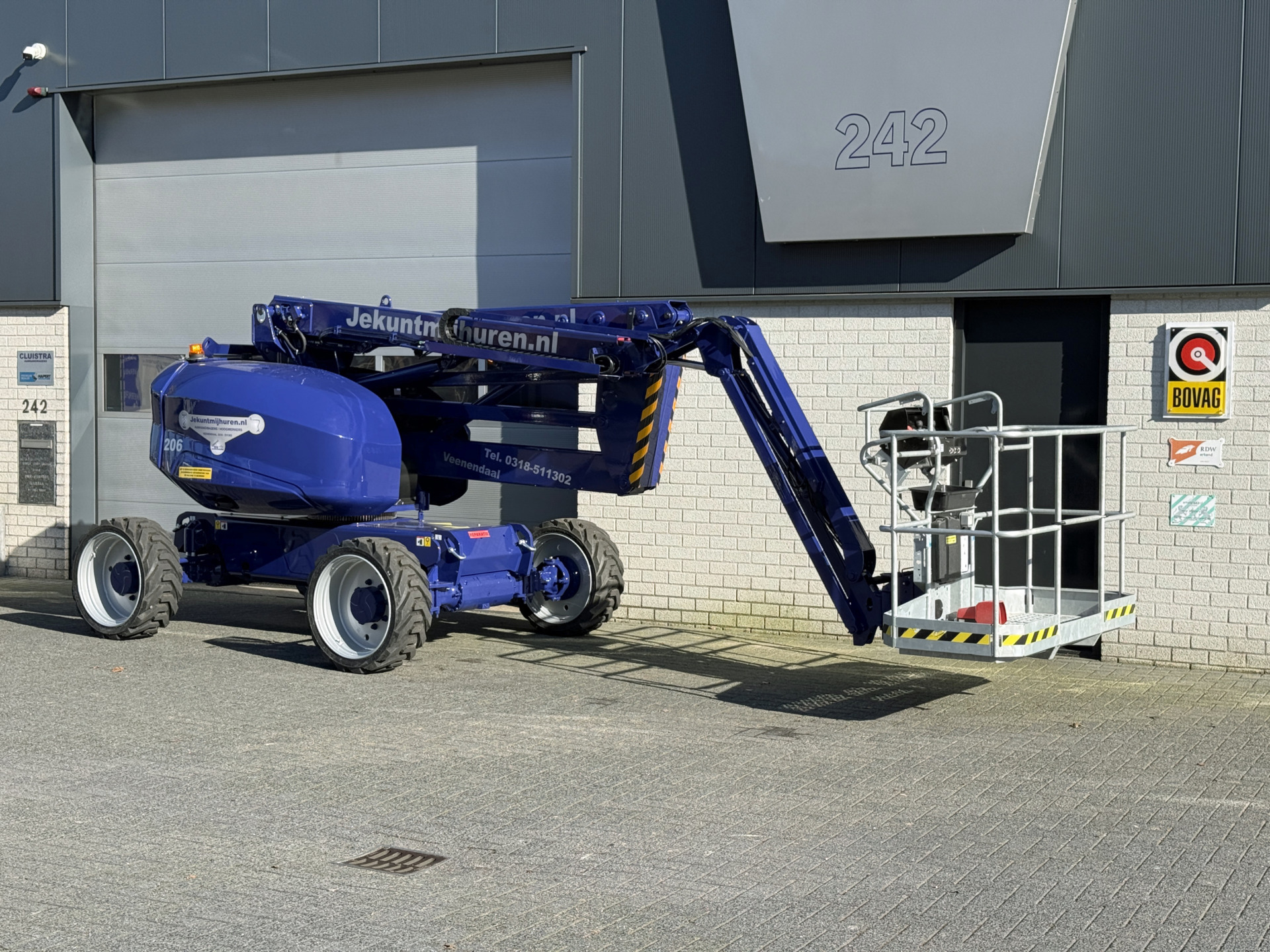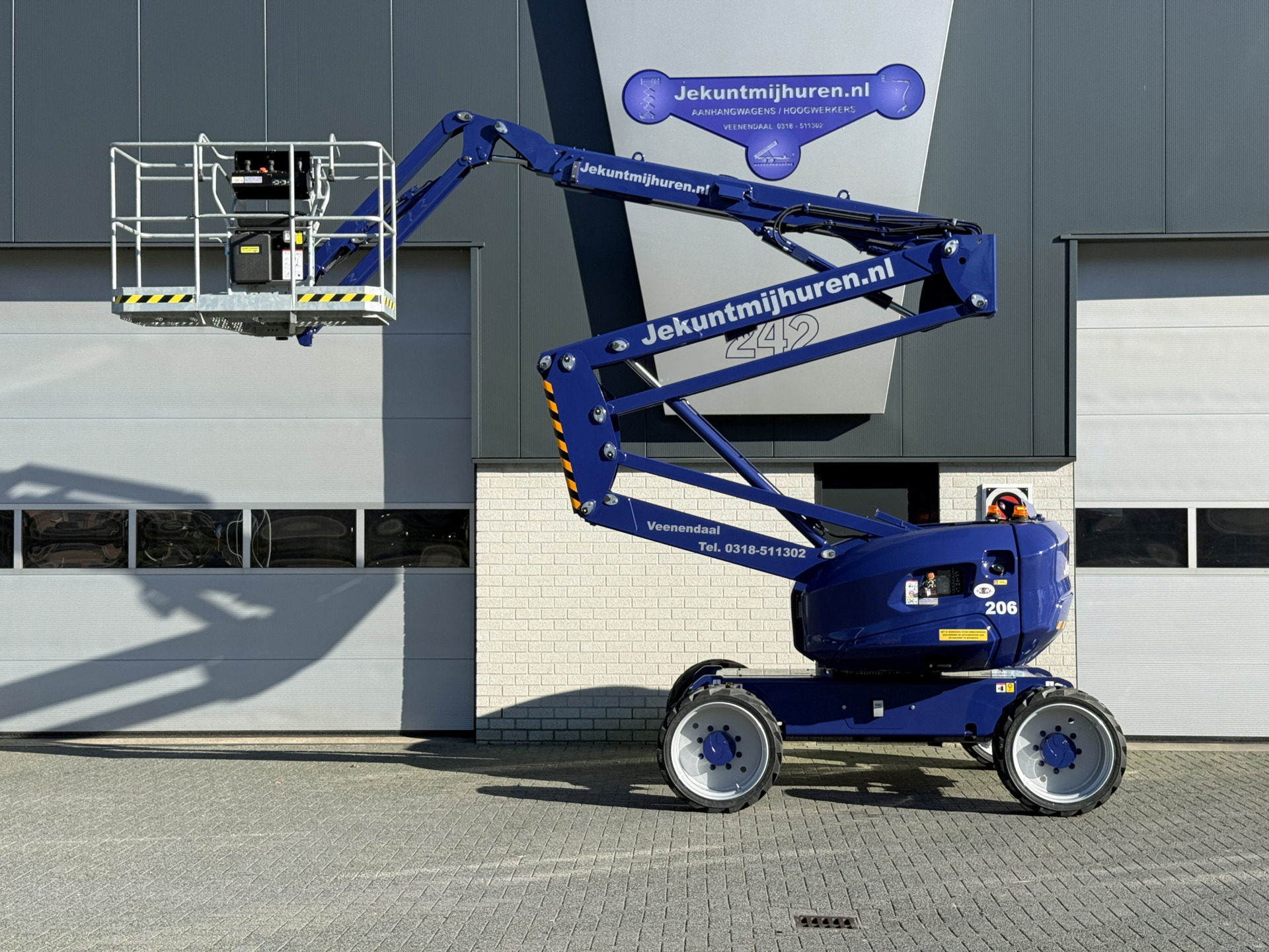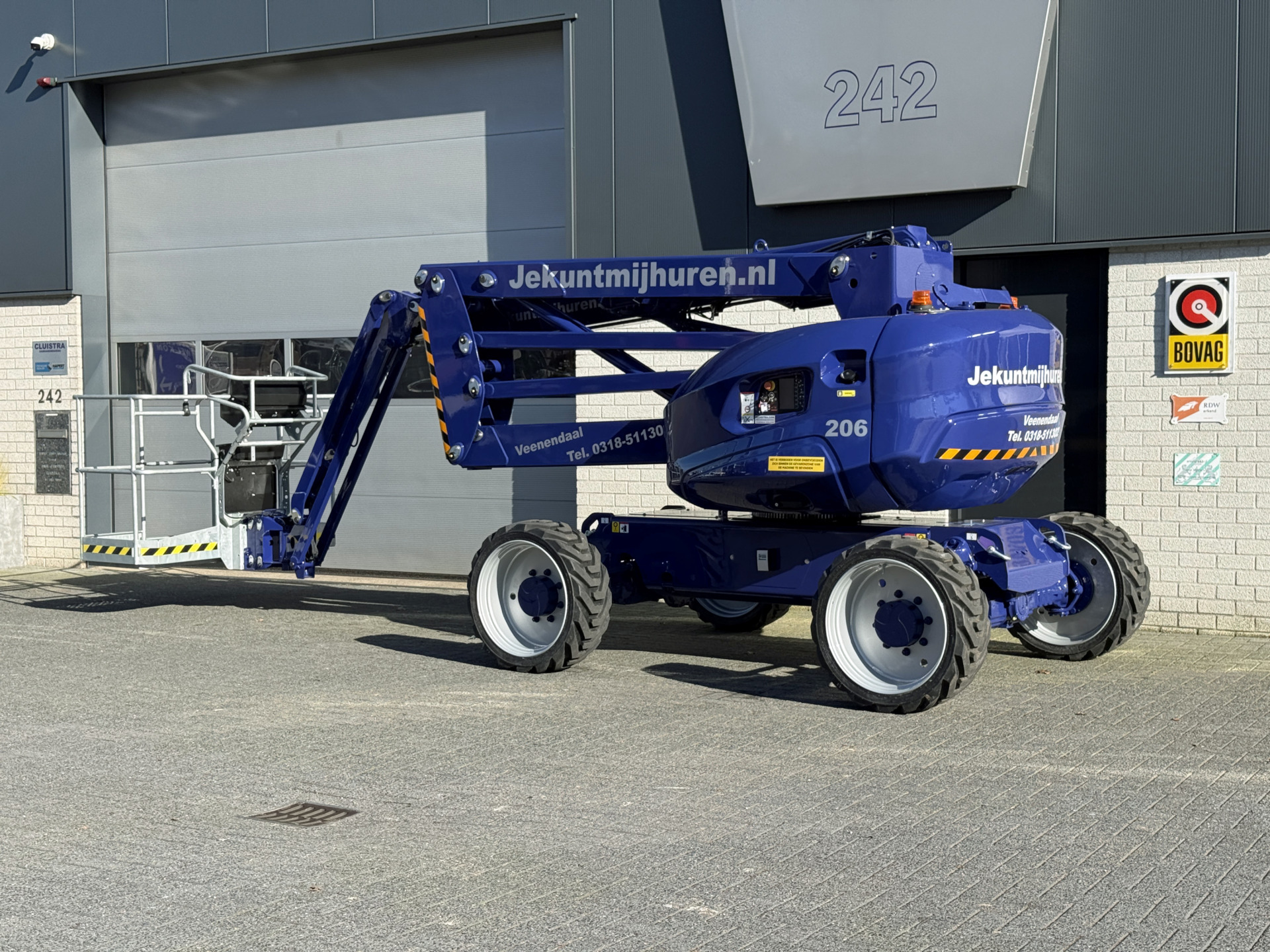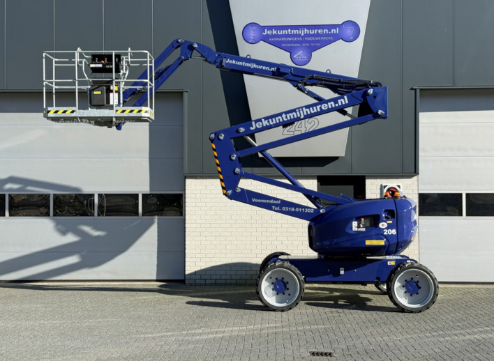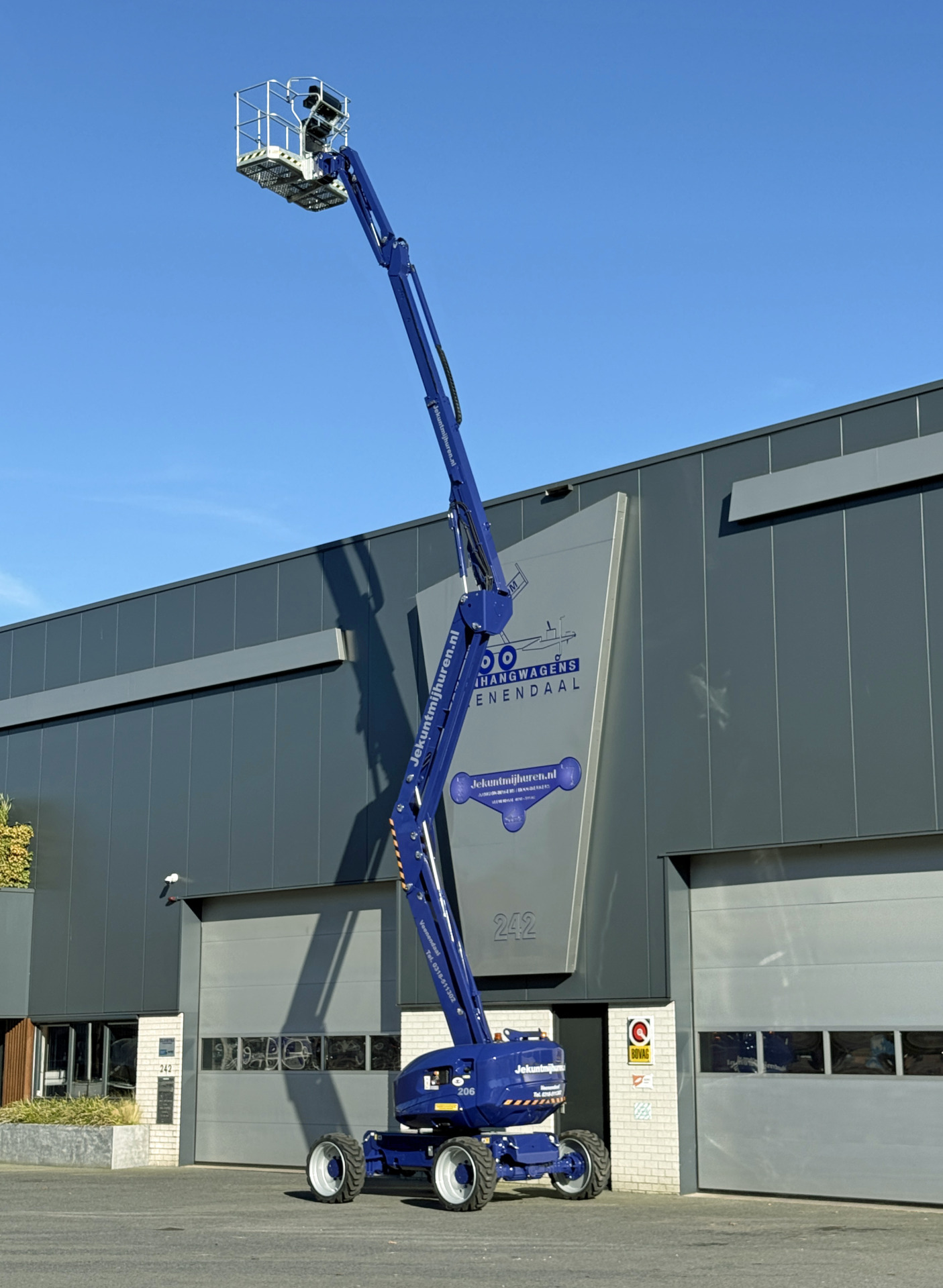 Een hoogwerker die verrijdbaar is als je op hoogte aan het werken bent, is erg efficiënt. Je hoeft namelijk niet steeds naar beneden om de machine te verrijden. Daarnaast zorgt de knikschuifarm constructie voor een compacte opbouw zodat je de machine eenvoudig ergens heen kunt manoeuvreren. Daarbij is de reikwijdte groot door de slimme geometrie van de mast.