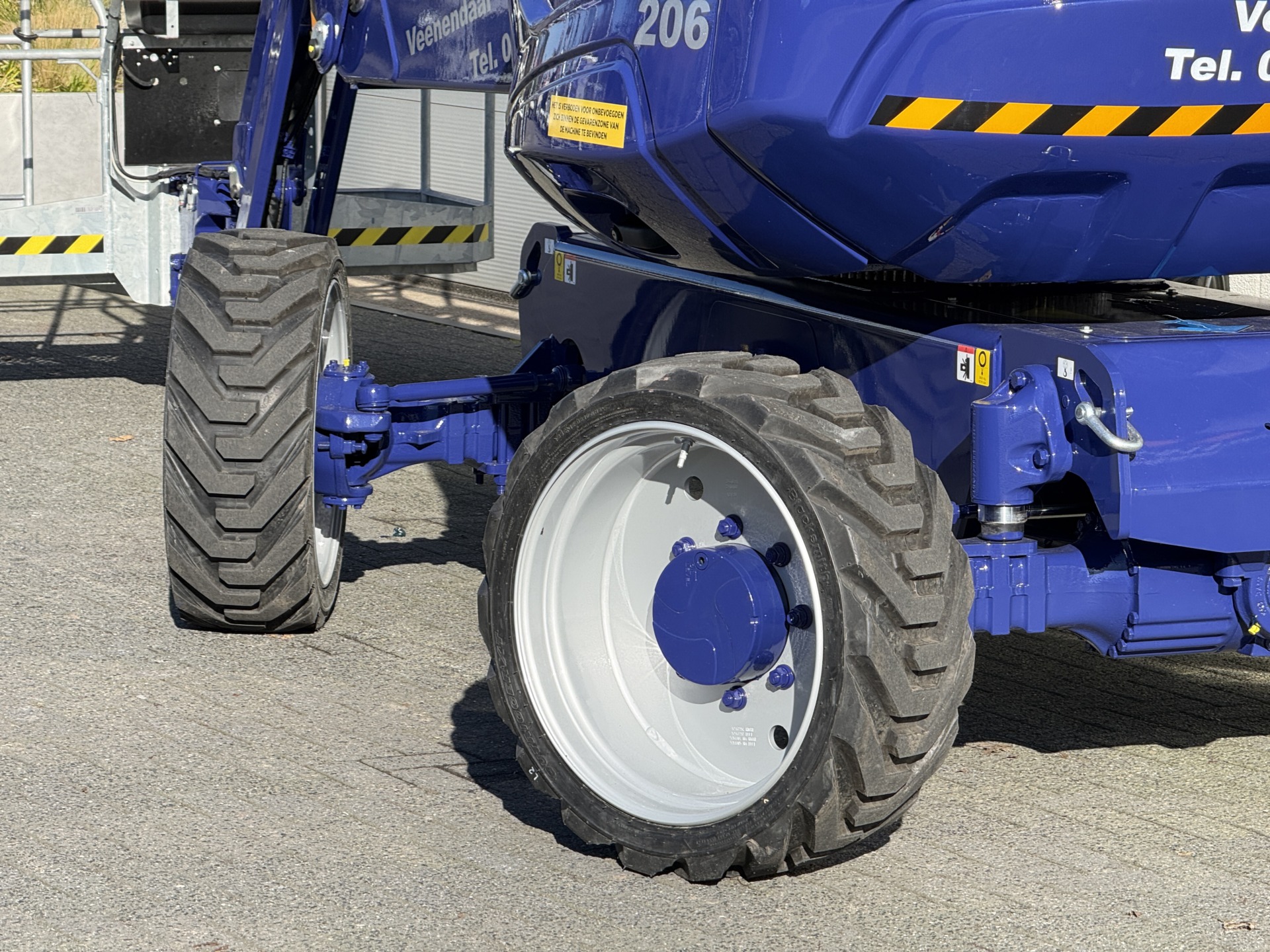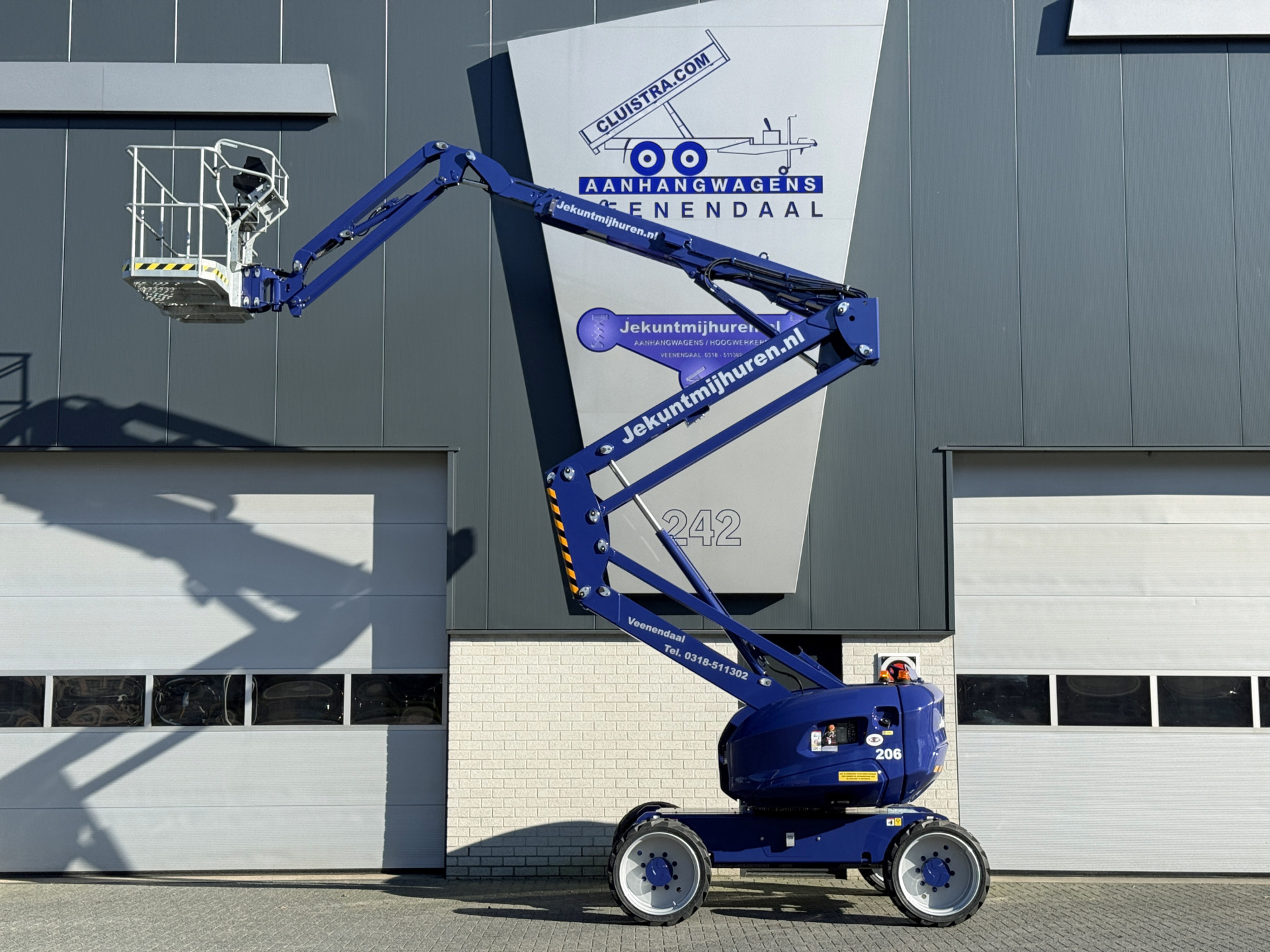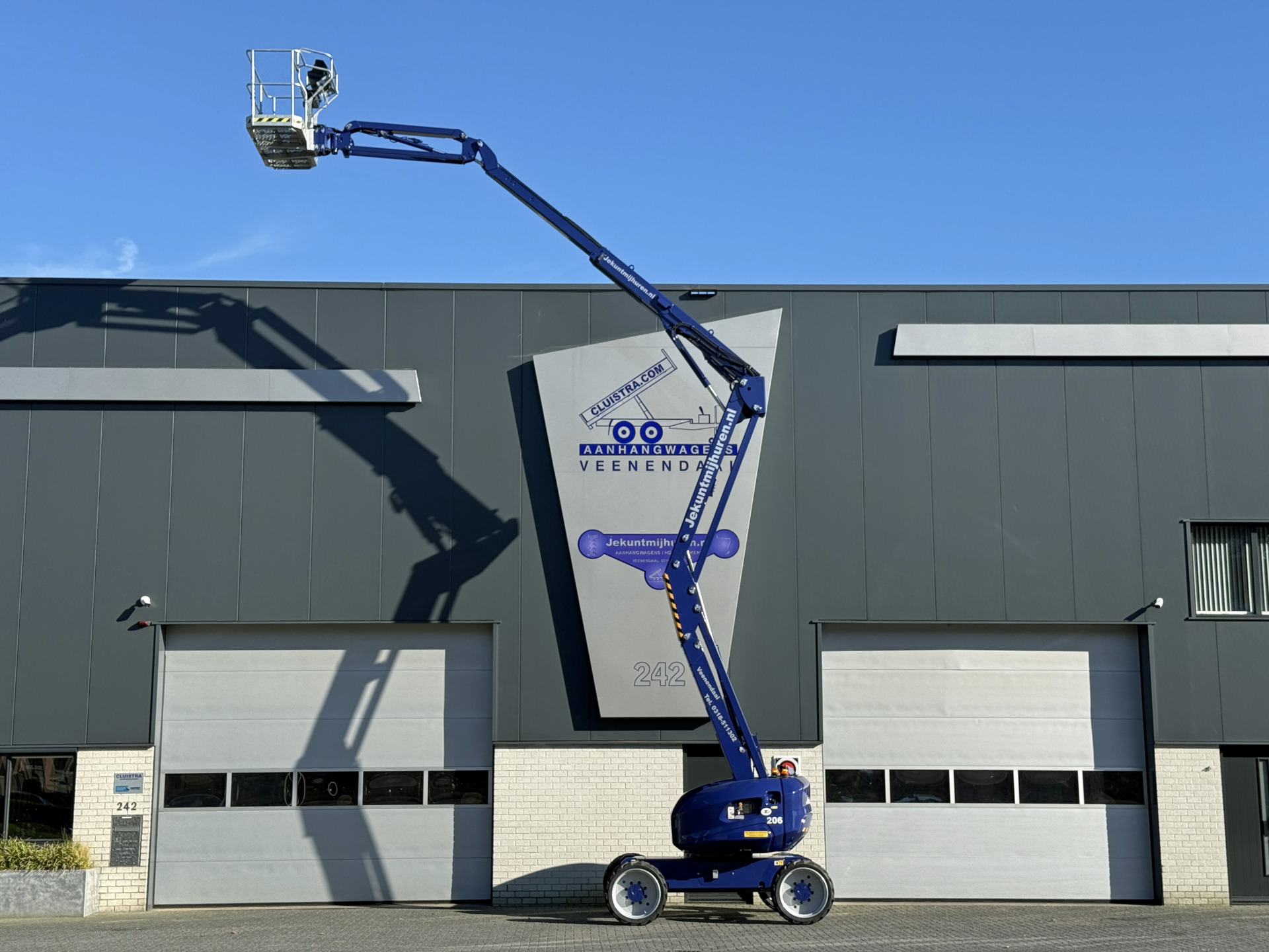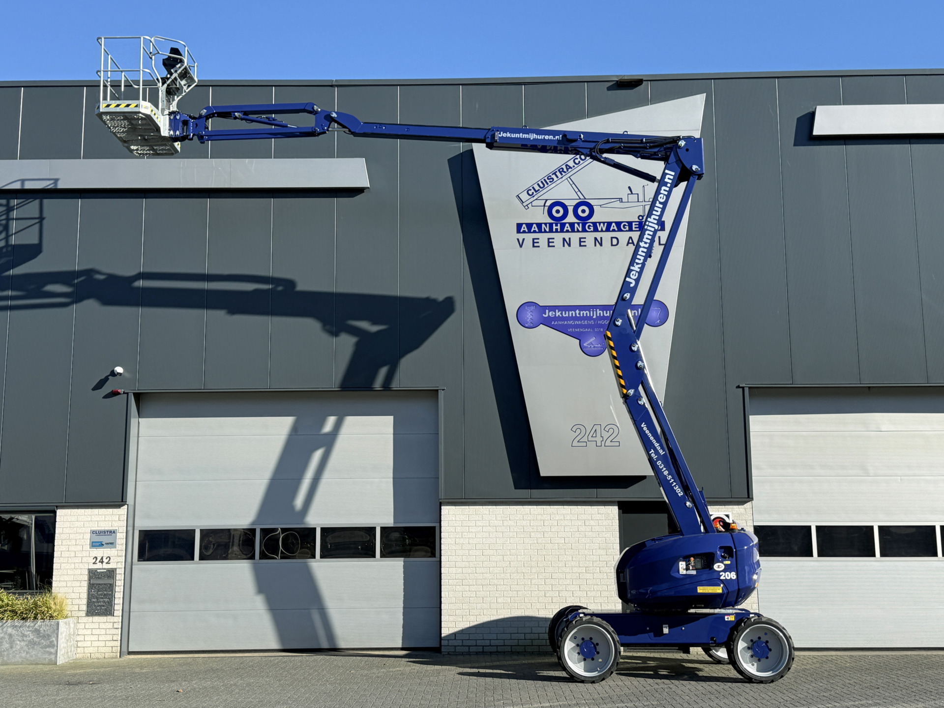 Een hoogwerker die verrijdbaar is als je op hoogte aan het werken bent, is erg efficiënt. Je hoeft namelijk niet steeds naar beneden om de machine te verrijden. Daarnaast zorgt de knikschuifarm constructie voor een compacte opbouw zodat je de machine eenvoudig ergens heen kunt manoeuvreren. Daarbij is de reikwijdte groot door de slimme geometrie van de mast.