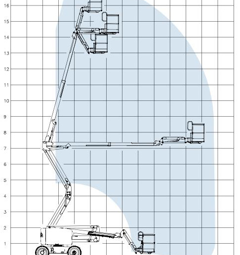 De 17 meter zelfrijdende knikschuifarm hoogwerker is een veelzijdige machine. De werkhoogte van 17,2 meter en een reikwijdte van 9,6 meter uit het hart van de machine, maken de machine inzetbaar voor veel klussen. Daarbij zorgt de zelfrijdende functie terwijl de machine op hoogte staat, voor veel efficiëntie.