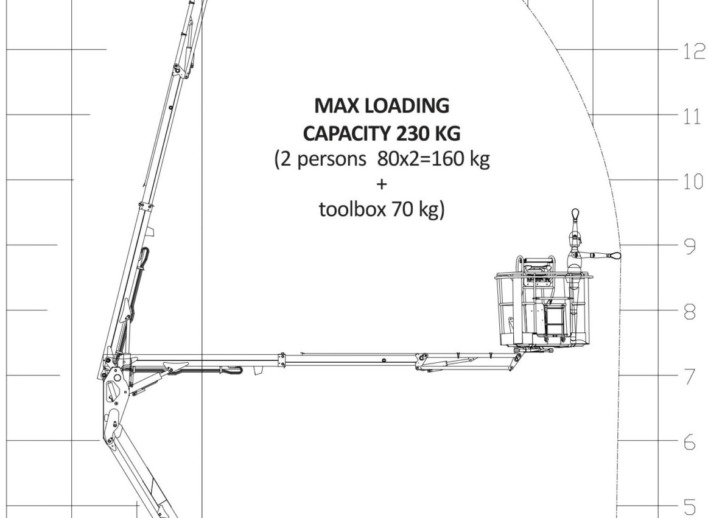De 15 meter Lithium hoogwerker heeft transportafmetingen van 3,41×0,81×2 meter (lxbxh en met gedemonteerde werkbak). Toch heeft de machine een werkhoogte van 15,4 meter en een reikwijdte van 6,6 meter uit het hart van de machine. Ruim voldoende voor de meeste klussen.