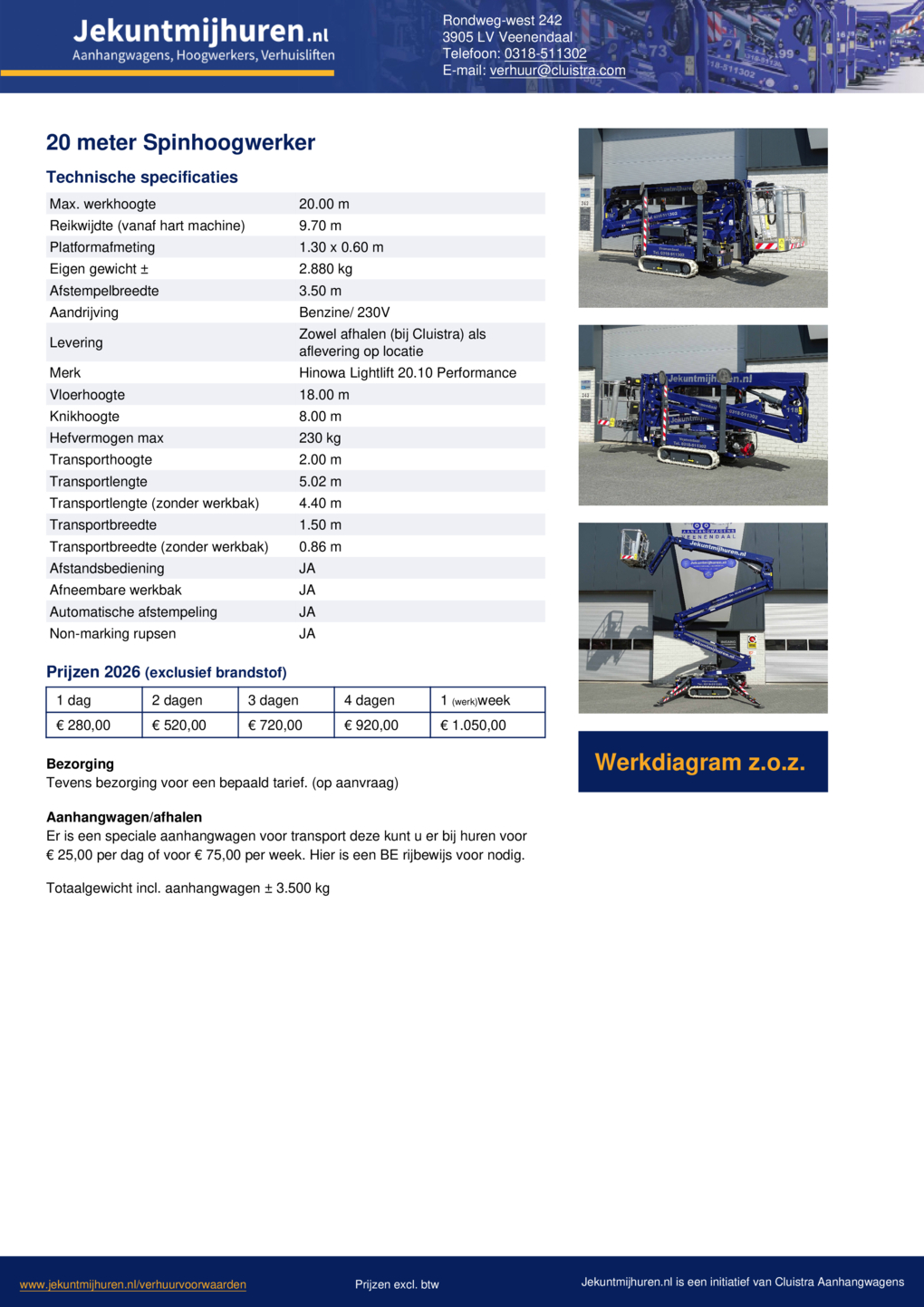 | Max. werkhoogte | 20.00 m |