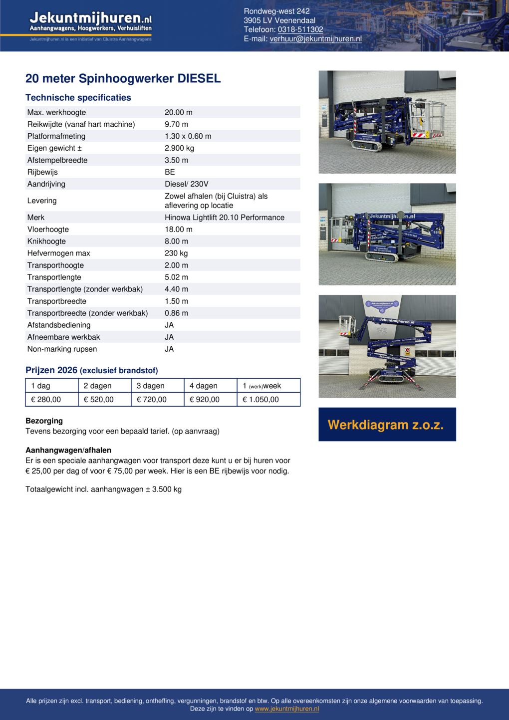 | Max. werkhoogte | 20.00 m |