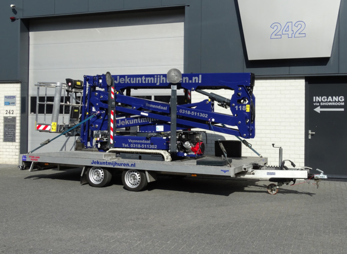 Voor het transport van deze spinhoogwerker hebben wij een speciale aanhangwagen. Je kunt deze huren voor € 25,00 per dag of voor € 75,00 per week. Voor langere periodes bieden we je in overleg een speciale prijs. Voor het gebruik van deze aanhangwagen heb je een rijbewijs BE nodig.