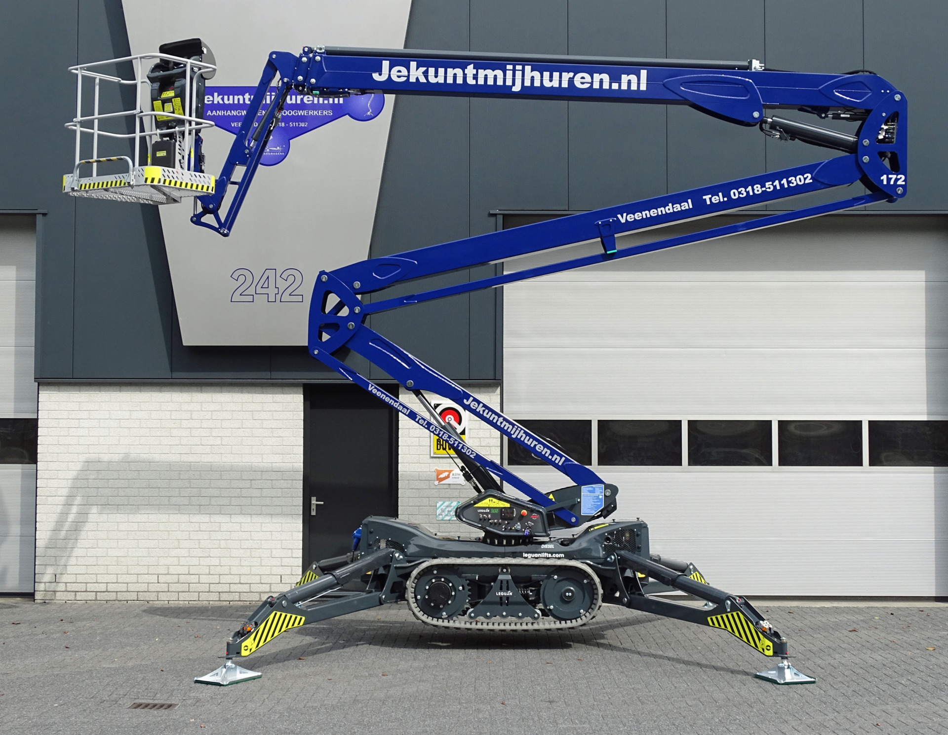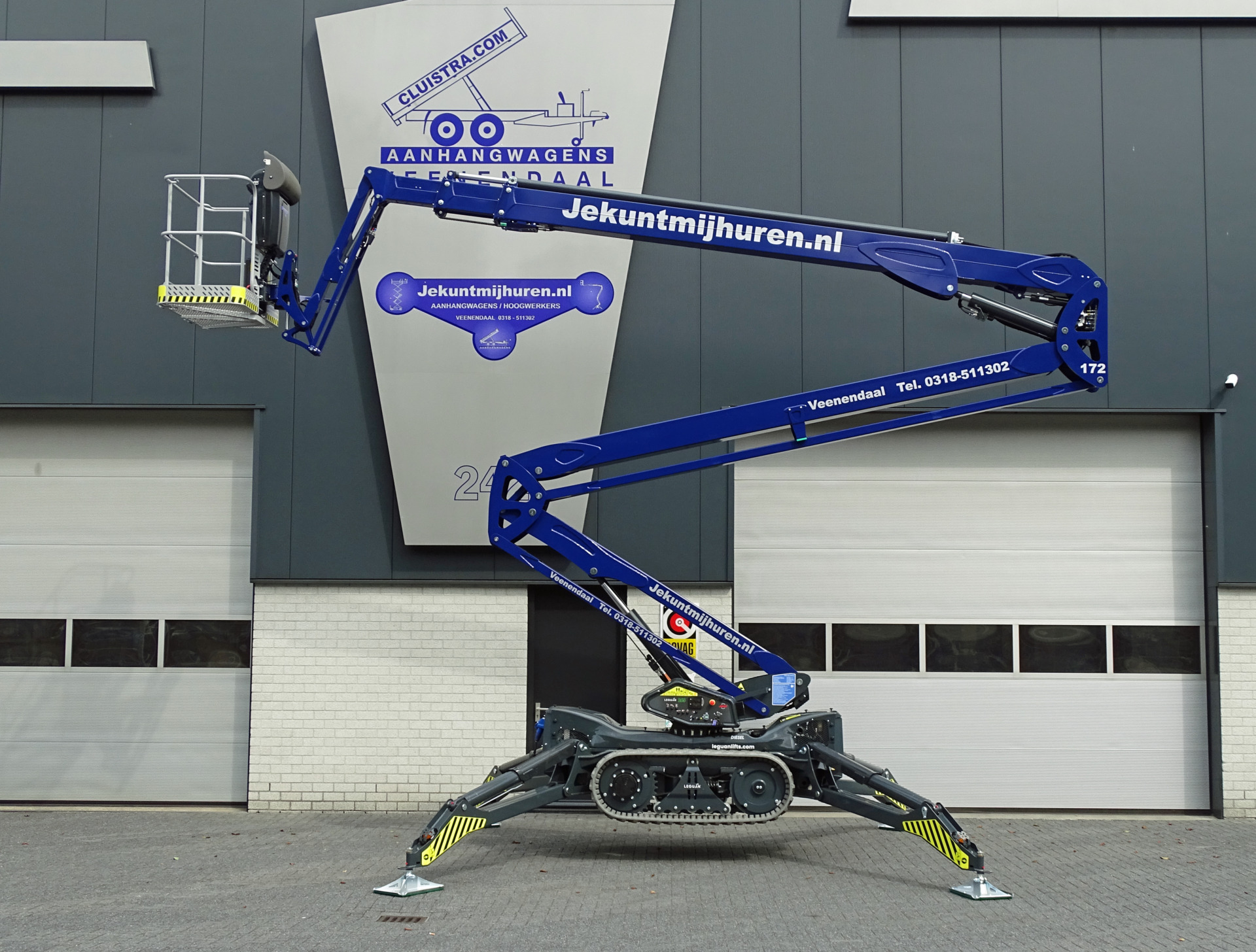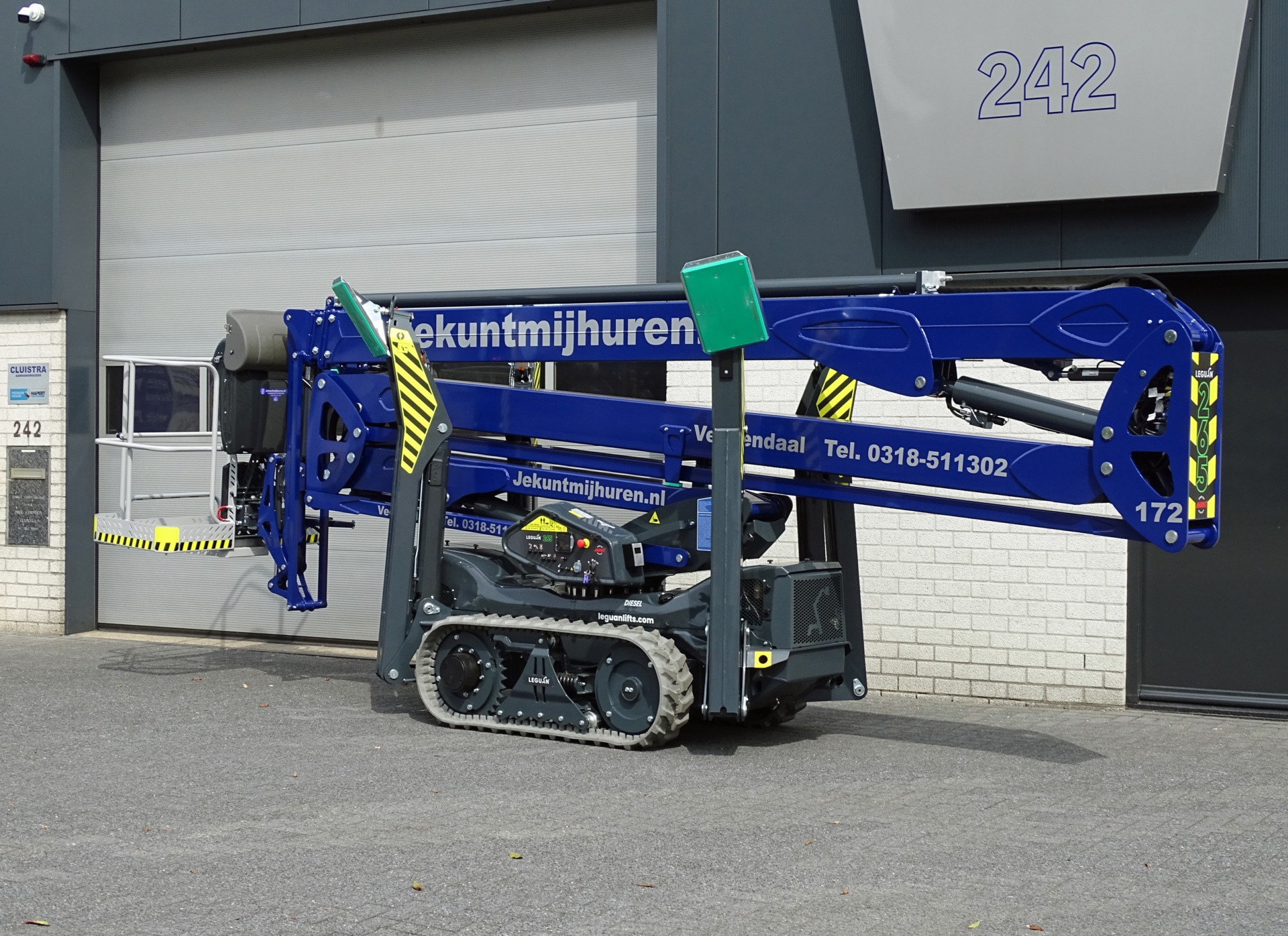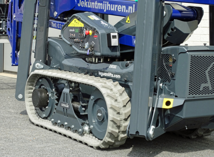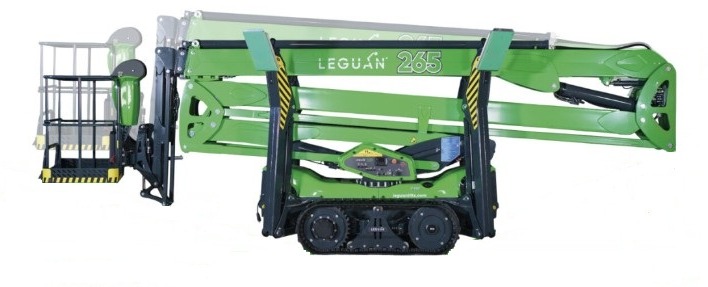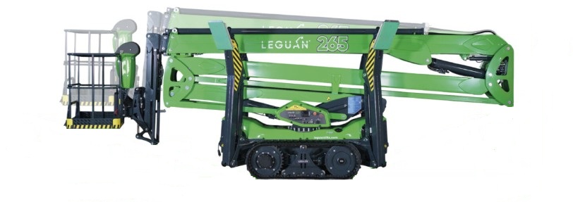 Deze Leguan 265 biedt een werkhoogte van 26,5 meter en heeft een zijdelingsbereik van 13,6 meter. En dat met een hefcapaciteit in de werkbak van 250 kg. Kortom, grote prestaties voor een machine die in praktisch elk terrein inzetbaar is.