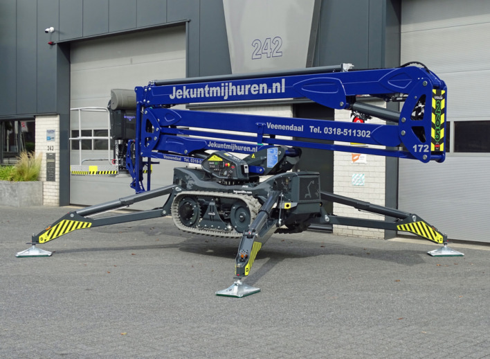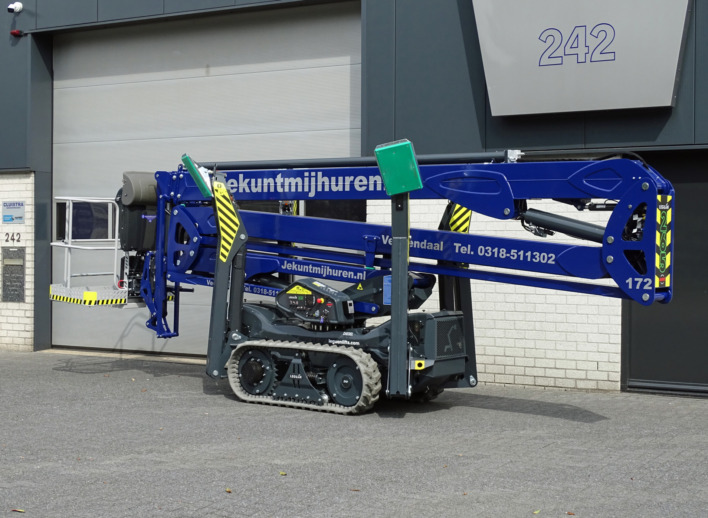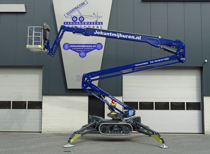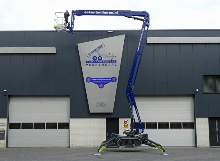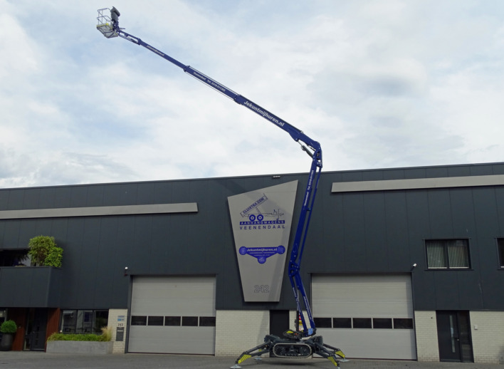 Een spinhoogwerker met veel bodemvrijheid en een krachtige rupsaandrijving die ook nog eens een werkhoogte van ruimschoots 25 meter biedt. De ideale machine die met zijn knik-schuifarm constructie ook nog eens een groot bereik biedt. En in verhouding met een laag eigen gewicht. Deze 25 meter spinhoogwerker is op dit moment ook de snelste machine in zijn klasse als het gaat om de bediening.