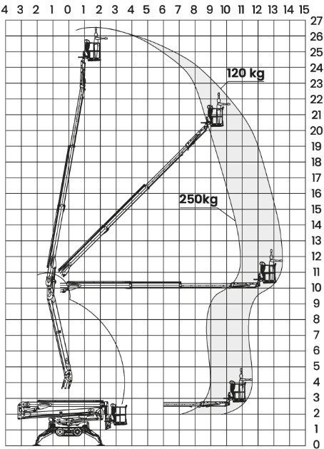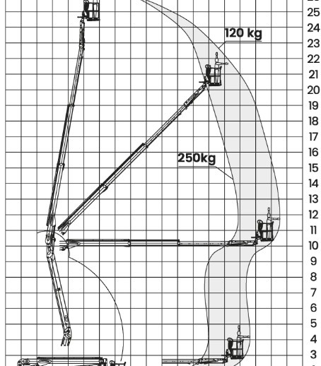 | Reikwijdte bij 250 kg (vanaf hart machine) | 10.80 m |